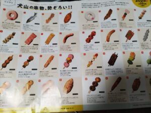 観光地の散策の楽しみといえば、やっぱり食べ歩きでしょう。犬山では「犬山の串グルメ」として、ユニークな取り組みを展開していました。紹介されていたチラシには、なんと32店舗もの串料理・串お菓子がラインナップ!
