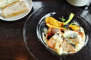 私は「La vitaランチ」のお魚料理、ふわふわ肉厚なサーモンをチョイス。クリーミーで柔らかく、とても美味しくいただきました。他のお料理も彩り豊かで、心ゆくまで堪能できる素敵なお店でした。
