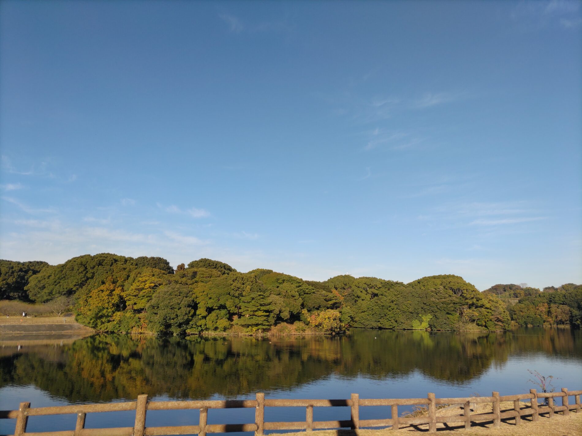 この写真は、愛知県の知多半島にある佐布里池(そうりいけ)です。佐布里池といえば、春の梅の名所として知られ、開花期にはたくさんの人で賑わいます。しかし、真冬の今は訪れる人も少なく、水面が静まりかえった湖畔といった雰囲気。私はこの静寂に包まれた冬の景色もまた、心惹かれる好きな風景の一つです。