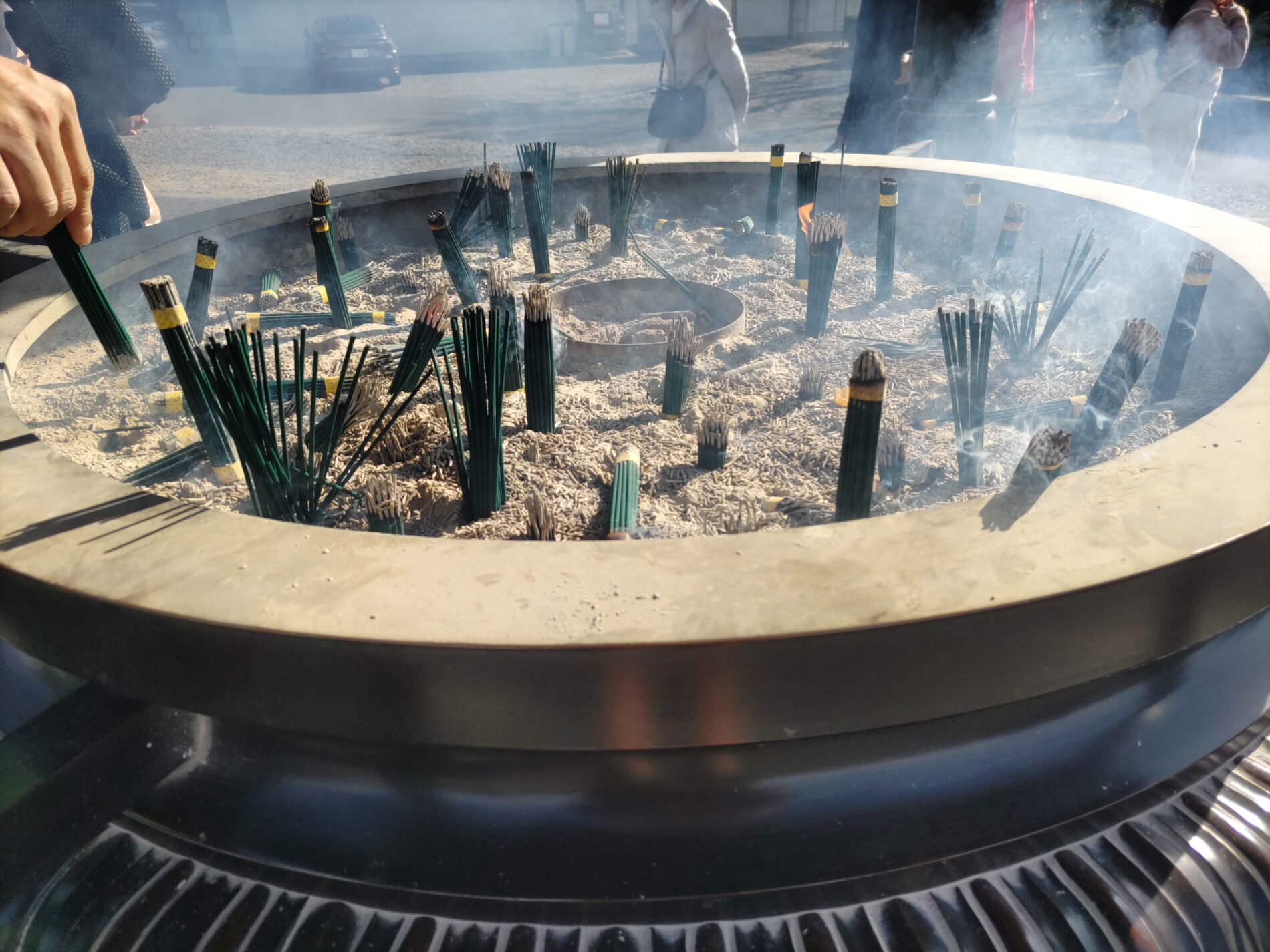 お正月時ですからいつもより参拝される方は多いです。それでも“混雑”という感じはなく、参道をゆっくり歩き、山門でお辞儀をして入り、自分のペースでのんびりとお堂まで歩きます。その間に顔をなで続ける冷たい空気は、私の心を凛とさせ、神聖な心もちへと誘ってくれます。日泰寺の境内の広々とした空間が嬉しくて、見上げる空も実に広々していて、たいへんスッキリとします。深呼吸を繰り返すと、」スッキリ感が増してきて、顔がほころぶのが分かります。